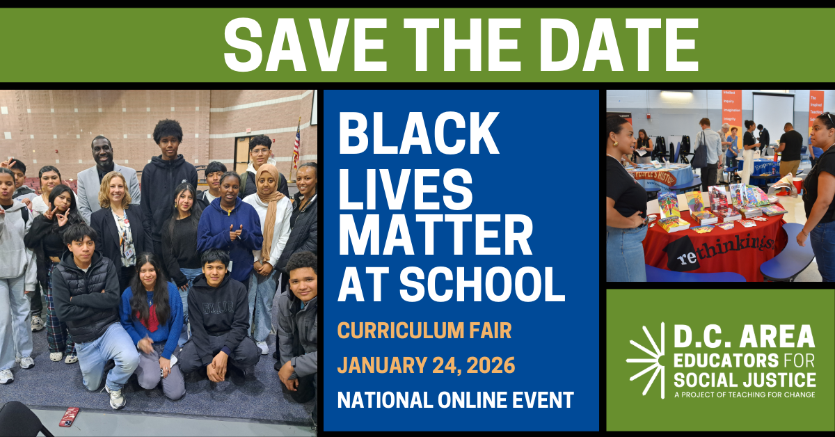 On Saturday, January 24, 2026, Teaching for Change’s D.C. Area Educators for Social Justice will host an online curriculum fair featuring a keynote speaker and workshops set to uplift the 13 guiding principles that focus on improving the school experience for Black students.