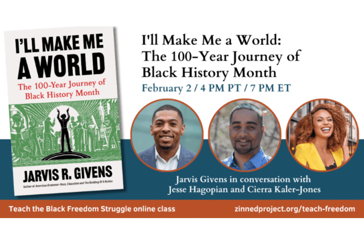 On Monday, February 2, 2026, historian Jarvis Givens joins Rethinking Schools executive director Cierra Kaler-Jones and editor Jesse Hagopian to discuss his latest book, I’ll Make Me a World: The 100-Year Journey of Black History Month, as part of the Zinn Education Project's Teach the Black Freedom Struggle series. Drawing on archival research, personal stories involving family and students, and especially the wisdom of Black educators, Givens recovers the legacy of Carter G. Woodson and many others who envisioned Black history as a liberatory force — knowledge that shapes who we are, how we resist, and what we dream. Givens will also talk about the Black Teacher Archive and another new book, American Grammar: Race, Education, and the Building of a Nation.