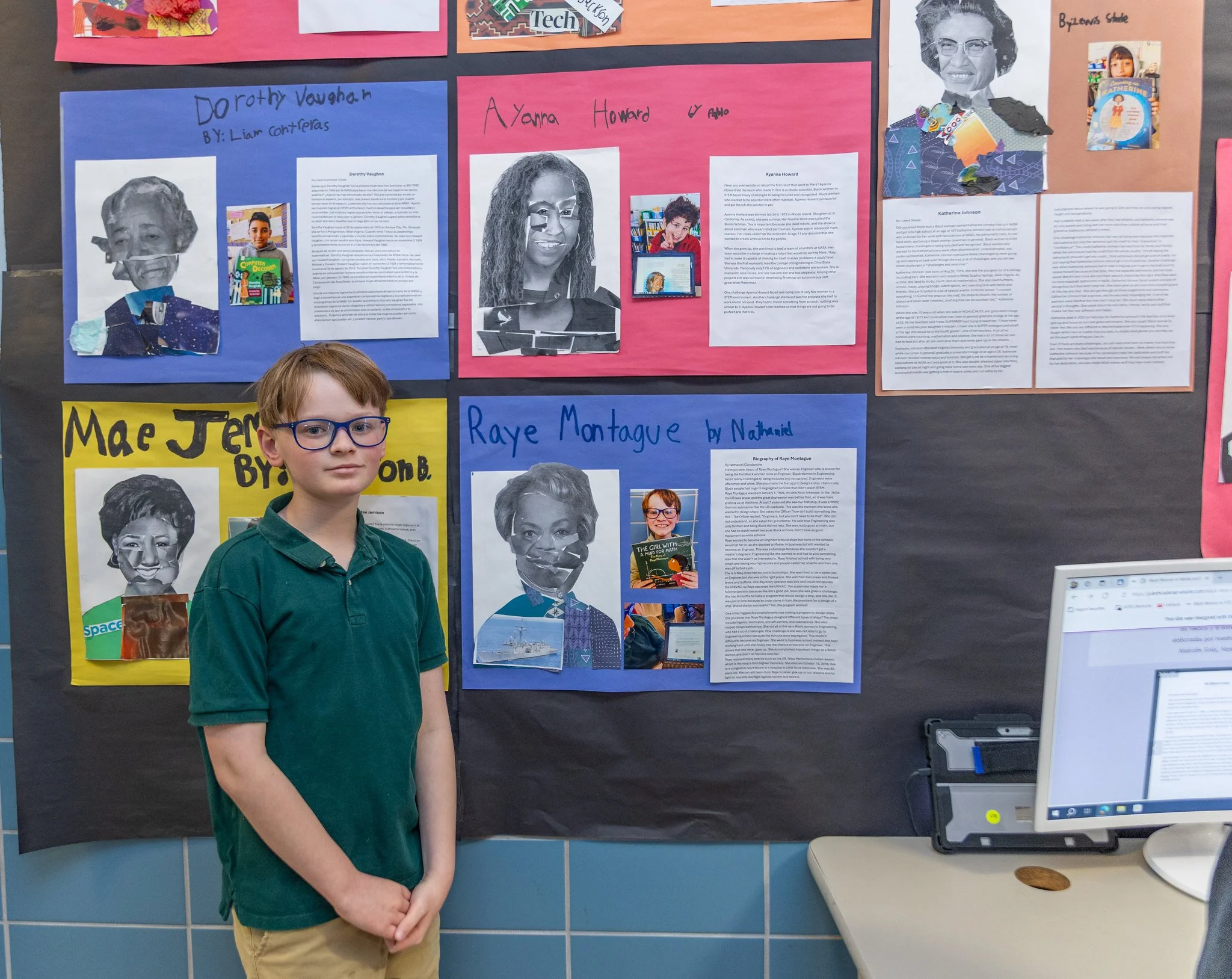 As one student shared, “We thought that Black women didn’t get enough biographies in Spanish and English, so everyone chose their own Black woman and we wrote a short biography about them.” Another student described researching artist Paula Mans, explaining the challenges she faced with sexism and single parenthood and how she continued to pursue her work despite those barriers. Nathaniel, who researched engineer Raye Montague, explained how she became the first Black woman to design a U.S. Navy ship and overcame barriers in a male-dominated field, reflecting students’ growing understanding of perseverance, innovation, and representation.