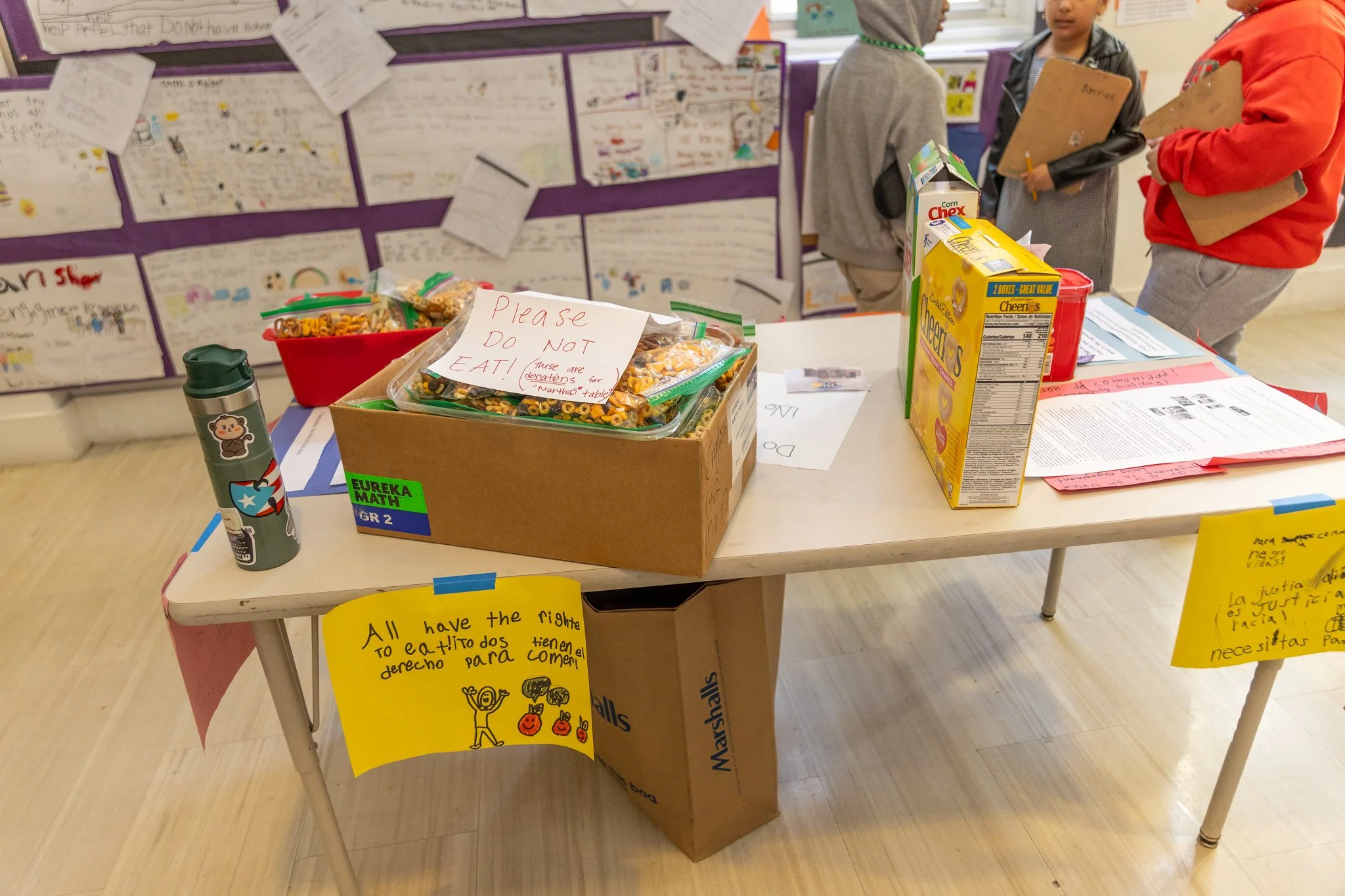 The class ultimately chose to create trail mix bags for Martha’s Table as their Take Action Project. Working together with family contributions, students prepared 300 bags of trail mix as an act of service grounded in their understanding of loving engagement. Students explained their choice by connecting the project to community care and food justice, noting that providing food supports people experiencing hunger and helps build a more peaceful and equitable community. One student reflected that “trail mix is like integration — it is not just one kind of snack; it’s all together and better that way,” demonstrating how students connected their learning about diversity, cooperation, and justice to their action.